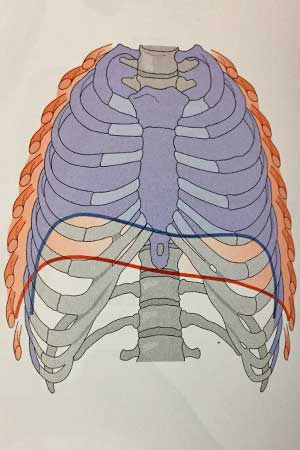 これは呼吸時の横隔膜と肋骨の状況を示した図です。
