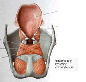 胸骨甲状筋が喉頭が前下方に引っ張り、茎状咽頭筋が喉頭を上に引っ張ることで、喉頭内にある声帯も補足的に伸ばされるようになります。