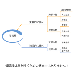 そうそう。以前、twitterやInstagramにアップしてそこそこ反響があった呼気筋のマインドマップを掲載しておきますね。